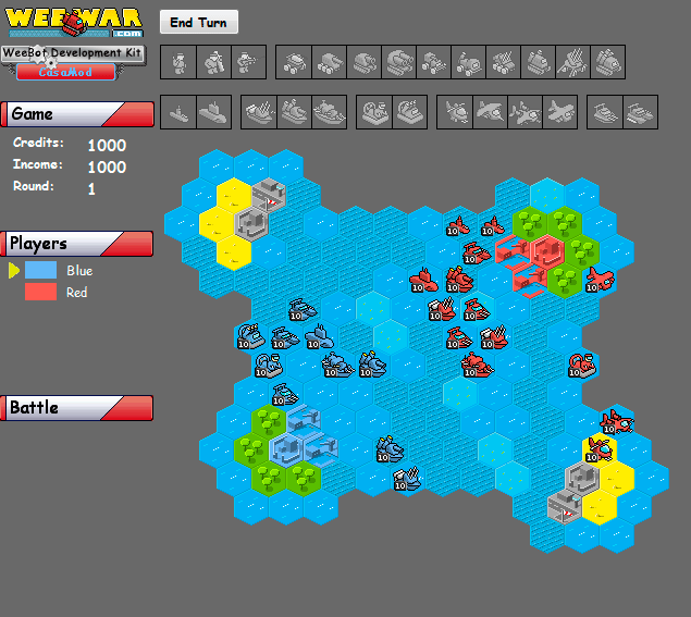 concept: I wanted to test out the new sea units and terrains and modded the map originally named ZCmap by Druz, added sea and air units, shallow and deep water. The income is 1000 per base so try to get the additional base at the airport as soon as possible. Red gets it 1 turn earlier and got a few lower units additionally to balance blue's first move advantage a bit.