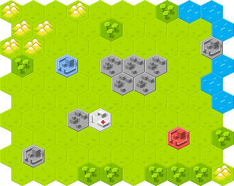 | What for: The game lacks regions that are of economical interest, but are harder to defend because towns could not spawn units right after being captured. This would add tactical playing like reinforceing, stalling enemy reinforcements and recapturing. Also map makers could do some nice street fight scenarios consisting of several town tiles next to each other, where players could not just simply spam troopers every turn. This tile would increase the importance of unit mobility. | Special modifiers: |